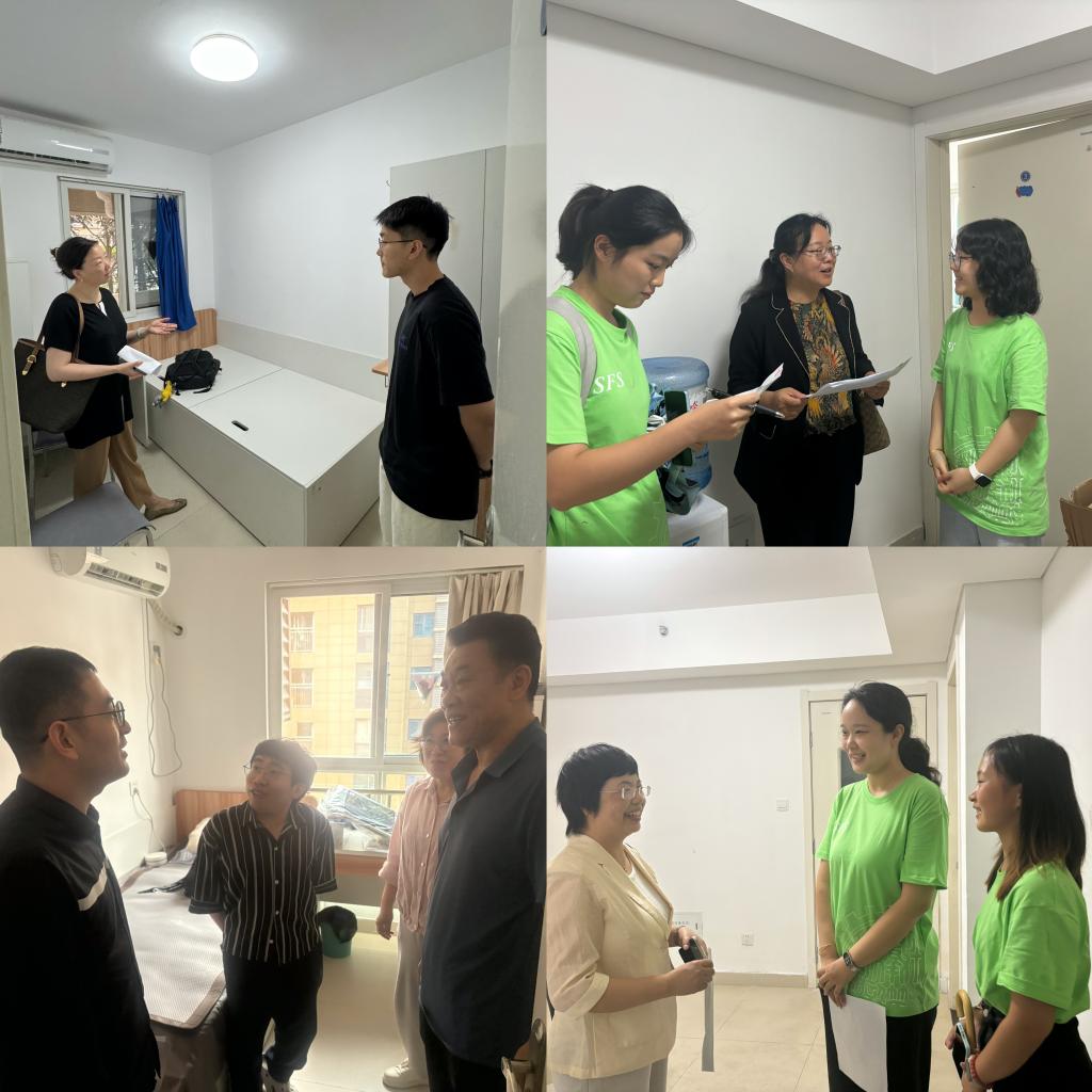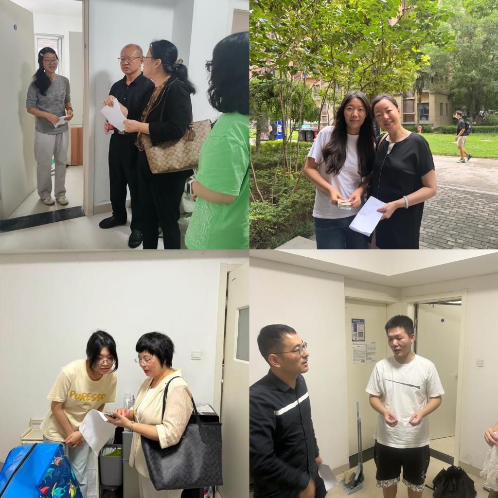 4日下午,学院党委副书记许明、副院长程冰、外国语言研究中心主任卢燕华、MTI研究中心副主任薛杰带队,辅导员巩倩倩和志愿者同学陪同走访新生宿舍。