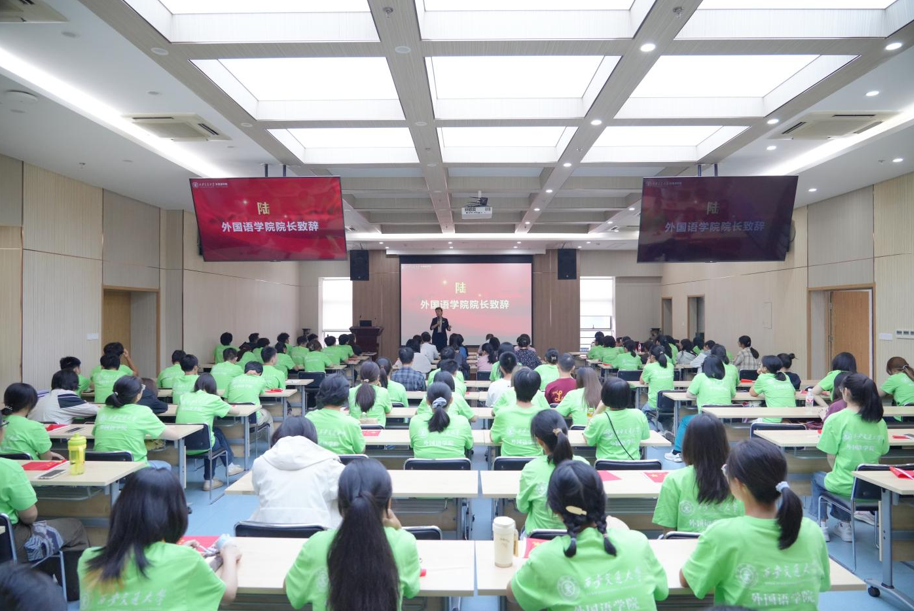 最后,外国语学院院长陈向京教授致辞。她希望同学们能够尽快熟悉适应大学阶段的学习节奏,坚定专业自信,提升科研能力。她强调,作为外院的学生,需要正确认识语言的工具性、人文性与科学性,提醒同学们要平衡分数与成长,鼓励学生用好外院优质的国际交流平台拓宽视野。陈院长以“学贯中西,精勤求知,外联五洲,语通四海”的院训寄语新生,祝同学们在交大的四年学有所成。