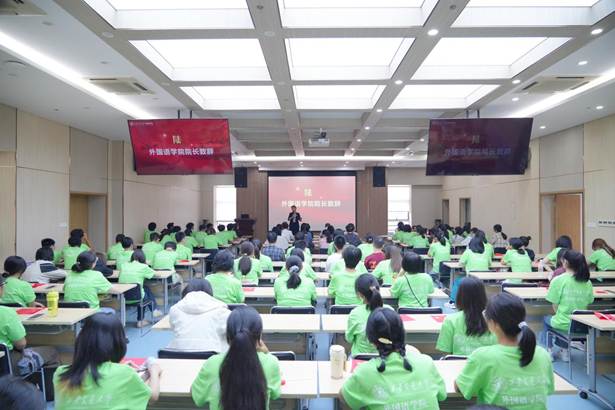 9月7日上午10:00,9159金沙申请大厅2025级本科生开学典礼在兴庆校区外文楼B1001报告厅隆重举行。外国语学院院长陈向京,彭康书院院务主任叶明老师,副院长李莹,英语系主任彭凤玲,日语系主任曹红荃,法语系副主任李文君,新生班主任刘睿、孙莉、张伟莉、张莉、樊静薇、吴洁莹、邹敏,党委组织员徐阳,教学主管左佳,教务员董小红,以及彭康书院辅导员赵睿婧懿出席活动,全体外国语学院2025级新生共同参与了这场意义非凡的“启航礼”。活动由外国语学院党委副书记许明主持。